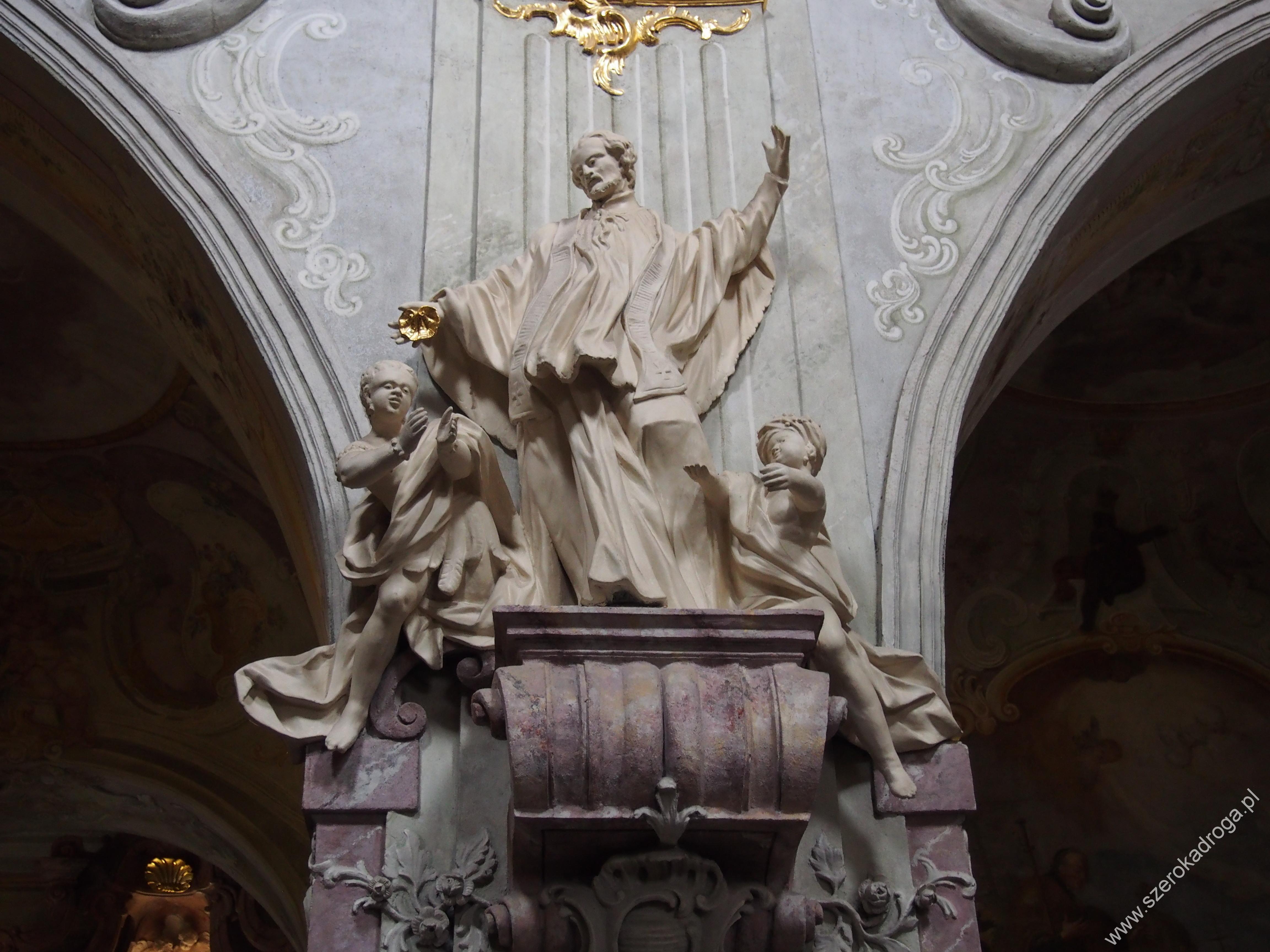 Kilkanaście metrów dalej stoi pomnik św. Jana Nepomucena. Jest to patron dobrej spowiedzi. Zginął za to, że nie chciał wyjawić tajemnicy powierzonej mu w konfesjonale przez żonę króla Czech, Zofię. Na cokole znajdują się nazwiska fundatorów. Na dole z kolei umieszczono figurki aniołków trzymających gwiazdy.
