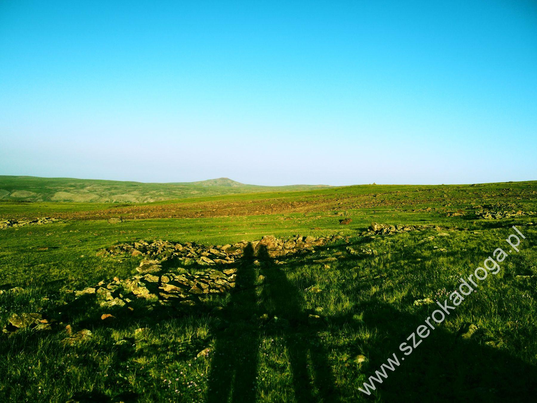 Wchodziliśmy na południowy, najniższy szczyt Aragacu. Jeśli chodzi o wysokość, to mieliśmy do pokonania około 1000 metrów wzwyż. Podejście było łagodne, więc tym samym także dłuższe. Na początku szło nam całkiem nieźle, trzymaliśmy równe tempo. Jednak z czasem nasza słaba kondycja dawała o sobie znać, zaczynało brakować tlenu. Szliśmy coraz wolniej, robiliśmy coraz więcej krótkich przerw. Noga Daniela, mimo zażycia kilku tabletek, bolała coraz bardziej. Na dodatek droga w pewnym momencie przekształciła się w kamienistą. Tu już ta opuchnięta kostka zupełnie nie pasowała.