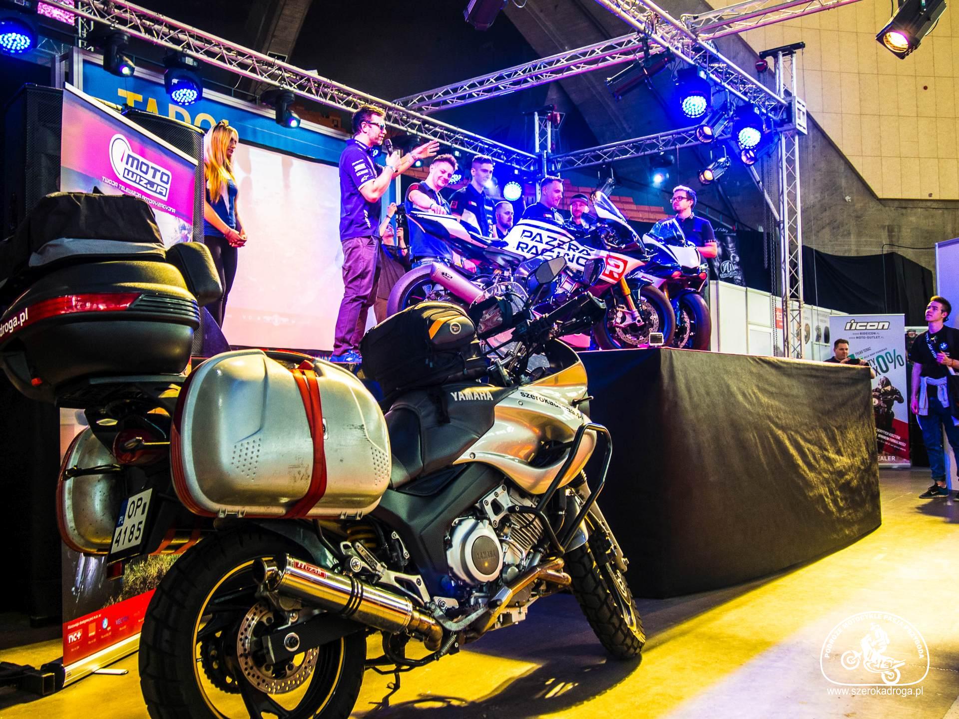 W tym roku mieliśmy możliwość przyjrzeć się targom z nieco innej strony – zostaliśmy zaproszeni przez organizatorów, by opowiadać o swoich motocyklowych przygodach na scenie głównej. Rozmowy prowadziła nieoceniona Ania Jackowska, czyli Kobieta na motocyklu . I mimo że w ciągu weekendu mieliśmy aż 4 wejścia, to każda z rozmów wyglądała inaczej. Oprócz nas gośćmi Targów byli także KH & Czyżu, Włóczylinki, MotoTravels.pl, Michał Latoch – od zera do bohatera. Dodatkową atrakcją były prelekcje podróżnicze.
